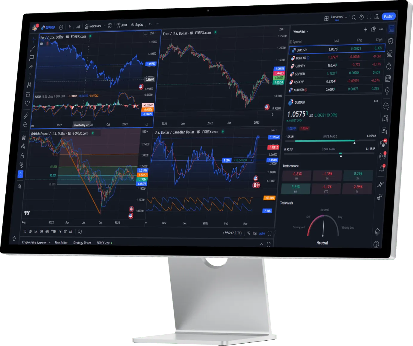 When you trade your FOREX.com account on TradingView.com, you benefit from sharing ideas with their community of over 30 million traders, investors, and analysts in addition to their industry-leading charts and tools.