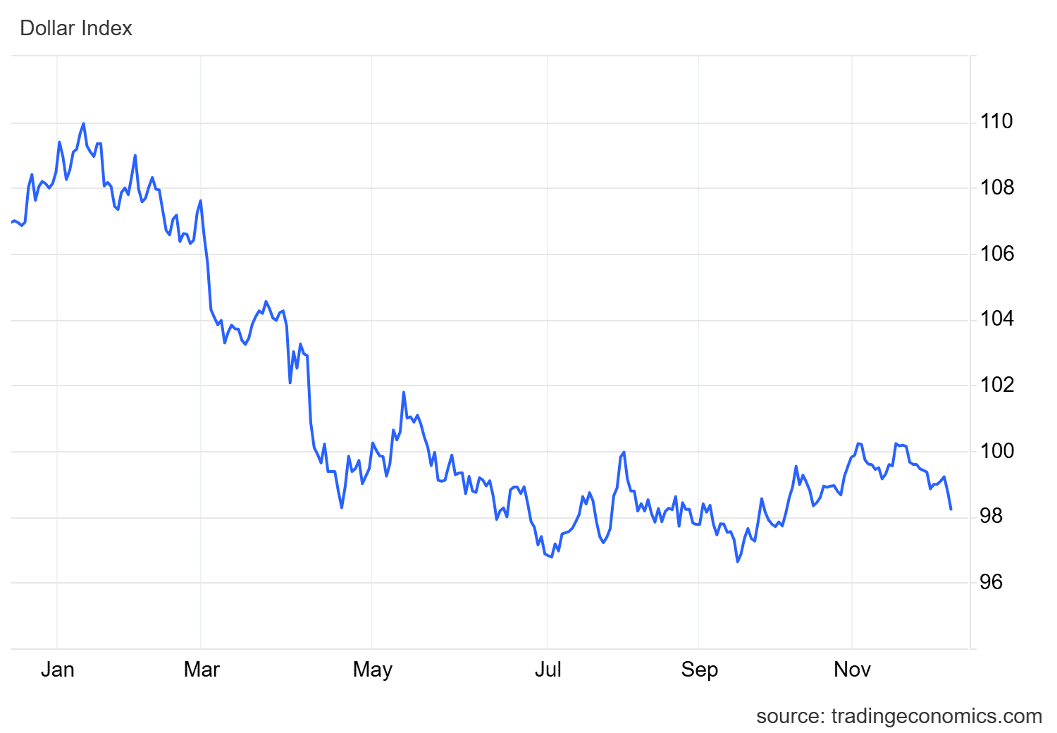 This decline in yields has also weakened the U.S. dollar, as lower Treasury returns reduce demand for the bonds themselves and, in turn, lower foreign capital inflows—directly affecting USD demand. This structural weakness is clearly reflected in the DXY index, which remains below 100 points, now reaching the 98-point area—levels not seen since October—indicating a broad loss of confidence in the U.S. dollar.