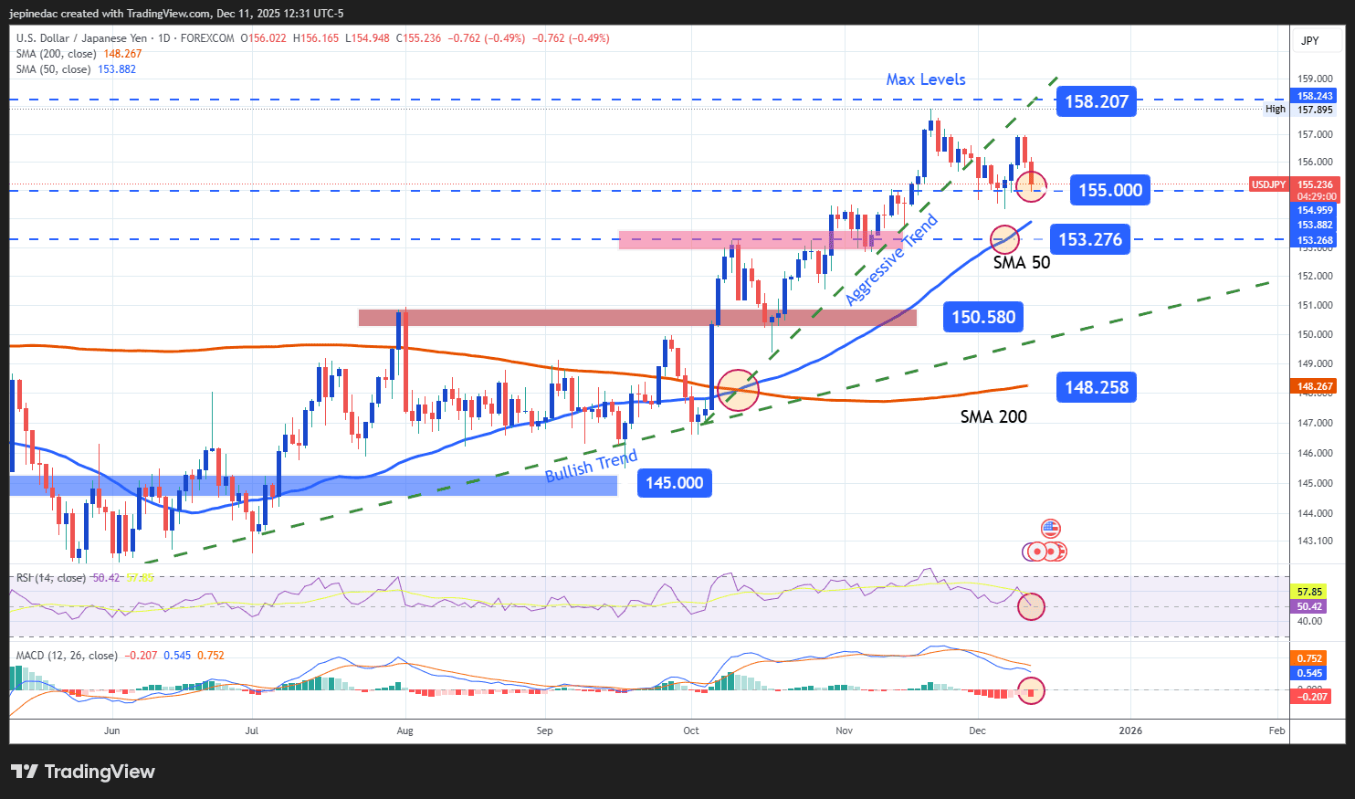 If upcoming communications confirm this shift and strengthen expectations for 2026, the yen could gain additional momentum. A rate hike would narrow the interest rate differential relative to other central banks, making yen-denominated fixed-income assets more attractive. This could support stronger demand for the Japanese currency and reinforce downward pressure on USD/JPY.